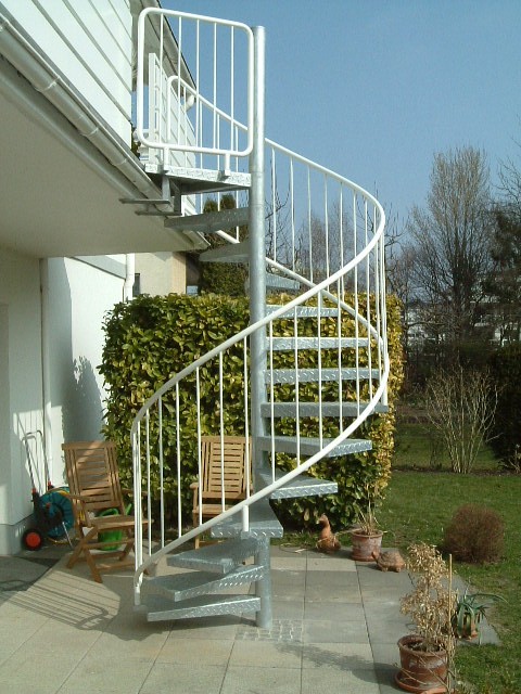 Stufenträgern mit angeschweißtem Riffelblech, inklusive Austrittspodest.