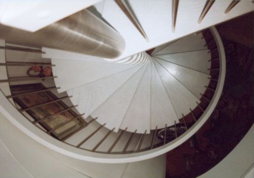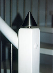 Steiggeländer aus eckigem oder rundem, weiß lackiertem Holzhandlauf und senkrechten