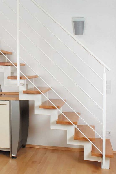 Geländer ist in den Eckpunkten geteilt. Die Stufen werden aus massiver Buche,
